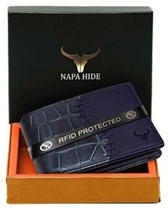 Totalmente Nuevo Para hombres Cuero Genuino RFID Bloqueo Billetera Color Marino y Gris