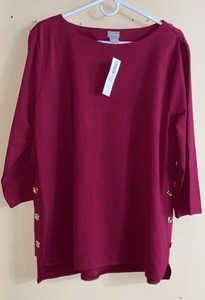 Blusa elástica Chicos para mujer 3 botones laterales dorados cuello ancho baya