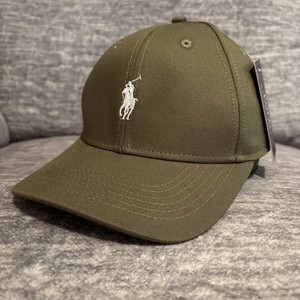 POLO Ralph Lauren Para hombres Chino Algodón Ajustar Papá Gorra de Béisbol Verde con Poni Blanco
