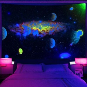 Arte de pared grande galaxia espacial luz negra póster tapiz reactivo UV colgante de pared