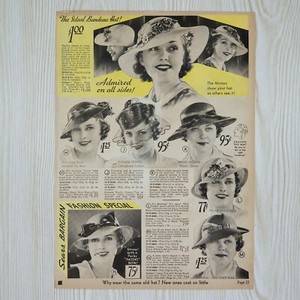 1935 MODA PARA MUJER Espejo Vistas BANDEAU BOINA SOMBREROS Sears 2-pg Impresión Anuncio CATÁLOGO 10,32 EUR