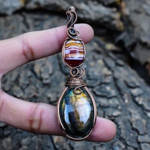 Colgante de piedras preciosas envueltas en alambre de cobre ágata con bandas de labradorita 3,3" PCRB14 12,28 EUR12,92 EUR