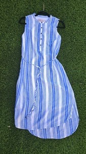 Vestido de mujer Philosophy de lino con cinturón rayas azules y blancas pequeño solero