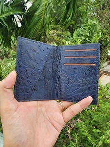 Cartera delgada unisex negra/azul 100 % cuero de avestruz genuino tarjetero piel real
