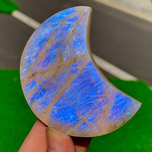 55G Natural Azul Piedra Lunar Media Luna Arco Iris Oro Arena Cristal Mineral Curación