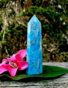 Varita curativa pulida cristal apatita azul/verde natural 90 g Reiki NORUEGA