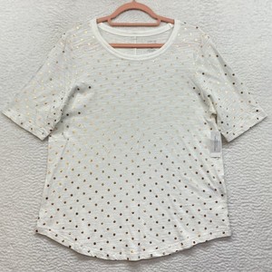 Camisa Banana Republic Mujer Grande Blanca Malibú Camiseta Metálica Dorada Lunares Nueva