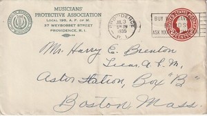 1935 Cover Musicians Protective Association Providence RI