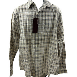 Camisa de manga larga para hombre Perry Ellis L beige a cuadros lino 100 % lino nueva con etiquetas 21,51 EUR