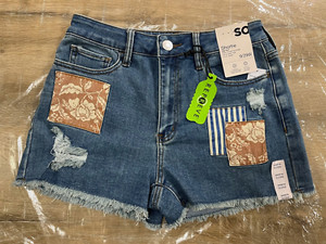 Pantalones Cortos Denim Boho Vintage o Retro Floral Rayas Retazos Talla 9/29 tiro Alto