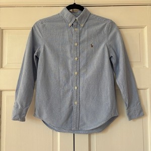 Polo Ralph Lauren para niño talla mediana 10-12 azul cambray algodón con botones logotipo