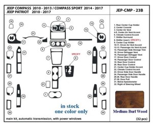 fits Jeep Patriot Compass 10 11 12 13 14 15 16 17 dash trim kit medium burl wood