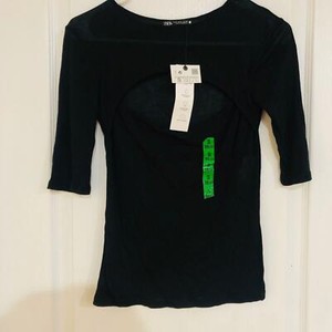 Top de mujer ZARA tejido recortado media manga cuello redondo negro talla pequeña nuevo con etiquetas 13,00 EUR