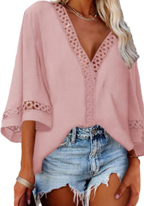Blusa informal suelta informal de encaje con cuello en V manga campana 3/4 de moda Grlasen para mujer L