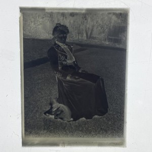ANTIQUE 1900s Imperial Glass Plate Photograph Negative Female Garden Portrait C