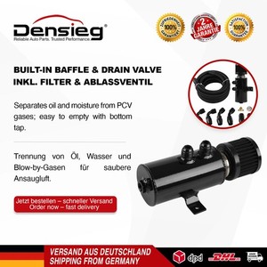 Tanque de captura de aceite de aluminio Densieg 0,75 L con filtro de aire + manguera de combustible AN10