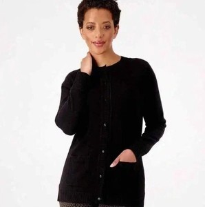 Isaac Mizrahi Live! Cárdigan suéter con botones delanteros Pitch negro X-grande A516293