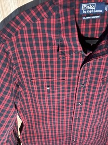 Polo Ralph Lauren Para Hombres Rojo Búfalo Cuadros Clásico Western Perla Camisa a Presión Grande