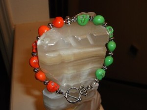 PULSERA CON CUENTAS DE CABEZA DE CRÁNEO TURQUESA DE 8 3/4" 8 MM VERDE Y NARANJA PARA HOMBRE/MUJER