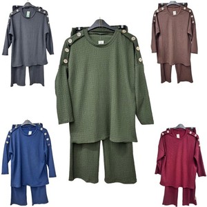Conjunto de 2 piezas de ropa de salón para mujer Co Ord tejido con cable pesado con descenso medio