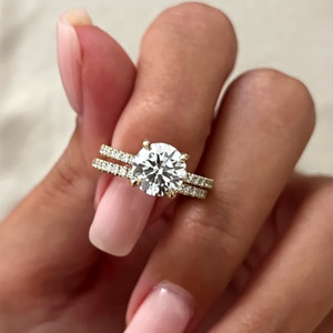 Juego de anillos de diamantes de corte redondo cultivados en laboratorio de oro amarillo de 18 quilates de 2,4,00 quilates IGI para mujer 7 8 9