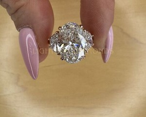 ENORME Anillo de Tres Piedras Certificado IGI VS1 F Ovalado 10.70 Ct Cultivado en Laboratorio