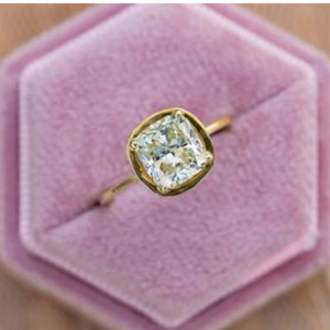 Anillo de compromiso de diamantes solitario simulado de corte radiante chapado en oro amarillo 14 K