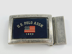 Vintage Polo EE. UU. ASSN 1890 Reversible Metal Hebilla Cinturón Bandera Americana