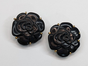 Juego de pendientes vintage de acrílico negro con clip de flor de rosa de 1,25" gruesos