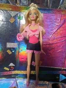 Muñeca Barbie paseadora de perros en ropa pelo rubio