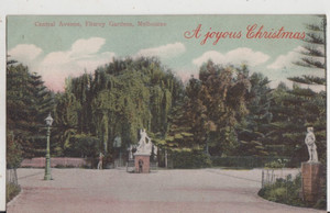 Postcard Central Avenue Fitzroy Gardens Melbourne Victoria 1d red queen stamp