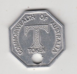 Token Commonwealth of Australia "T" 29mm aluminium octagonal used for tea