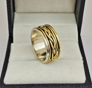 Anillo giratorio de diseño de latón macizo con patrón de cuerda anillo de meditación joyería hecha a mano