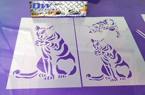 tenemos texturas, efectos, silueta, personajes multicapa, calaveras, patrones, diseños y azulejos. utilizamos un láser de alta potencia para cortar las plantillas para que estén de corte limpio y utilizamos 190 micras 100% mylar que es duradero, a prueba de disolventes, lavable y reutilizable muchas veces