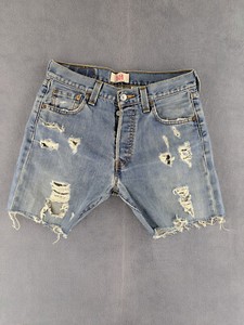 Short Jean Hotpants Distressed Levi's 501 W29 Bleu Lightwash Button Fly