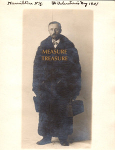 1907 RPPC HAMILTON, NUEVA YORK HOMBRE EN ABRIGO DE PIEL FOTO DE SAN VALENTÍN P70