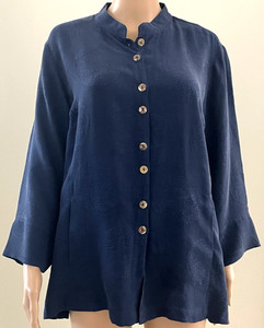 Chaqueta Citron Santa Monica Talla 1X Blazer Azul Marino Seda Texturizada con Bolsillos