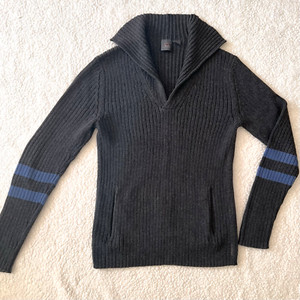 Suéter Armani Exchange Hombres Cuello Chal Talla Pequeña Gris Azul Tejido Algodón Lana Pullover