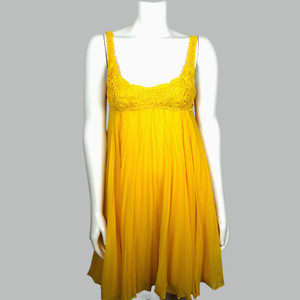 Vestido Gai Mattiolo Verano Amarillo 8 Italia 100% Seda Bordado en el Pecho Nuevo con Etiquetas
