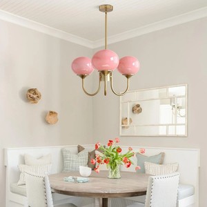 Lámpara de araña moderna Sputnik globo rosa de los años 50 de latón cepillado elegante accesorio de luz