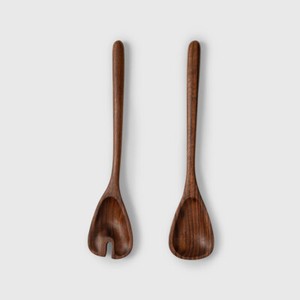 Nogal de madera tallada a mano, servidores de ensaladas, 14 in. Billete y hoja