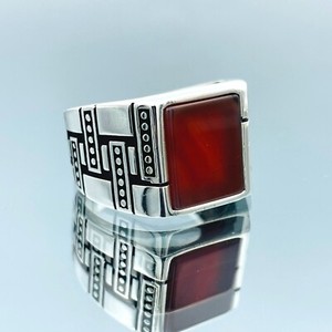 Anillo de piedra Aqeeq rojo para hombre anillo de plata de ley 925 hecho a mano regalo él anillo de plata