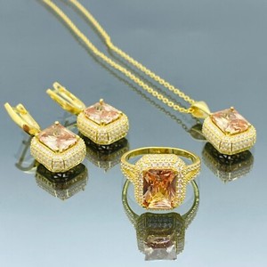 Juego de joyas de plata de ley 925 con piedra naranja citrino simulada para mujer hecho a mano