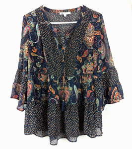 Blusa DR2 Talla M Transparente Azul Oscuro Multicolor Estampado Paisley Sin Forrar Top 1602 17,36 EUR