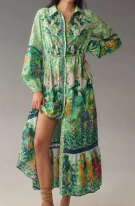 Maxi Camisa Vestido Anthropologie The Eleanora Manga Larga Verde Talla Mediana M-B46