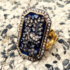 Joyería anillo victoriano de plata esmaltada con diamantes talla antigua mina genuina de 1,60 quilates
