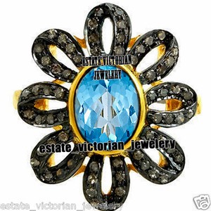 Precioso anillo de joyería vintage de plata con tachuelas de topacio azul diamante talla rosa de 1,35 quilates