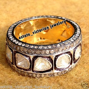 Joyería anillo de plata victoriano esmalte diamante talla rosa mina antigua genuina de 1,35 quilates