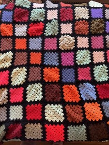 Manta Granny Squares Crochet Color Negro Pop Roseanne Hecha a Mano