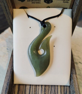 New Zealand Jade Greenstone Bound Fish Hook Large pendant 70mm L x 38mm W Unisex
